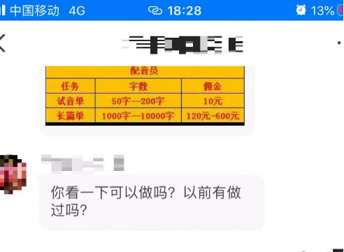 诈骗分子通过各种音乐软件、社交平台,以招聘录音员、配音员、核对错别字等兼职的名义吸引受害人。前期,诈骗分子会给受害人派发一些“录音”、“配音”、“核对稿件”任务,并支付佣金。后以暂没有可分配“录音”、“核对稿件”工作为由,诱导其在APP内做任务赚钱,以任务完成后就能赚取收益为由,引导受害人一次次加大投资,最后骗取钱财。